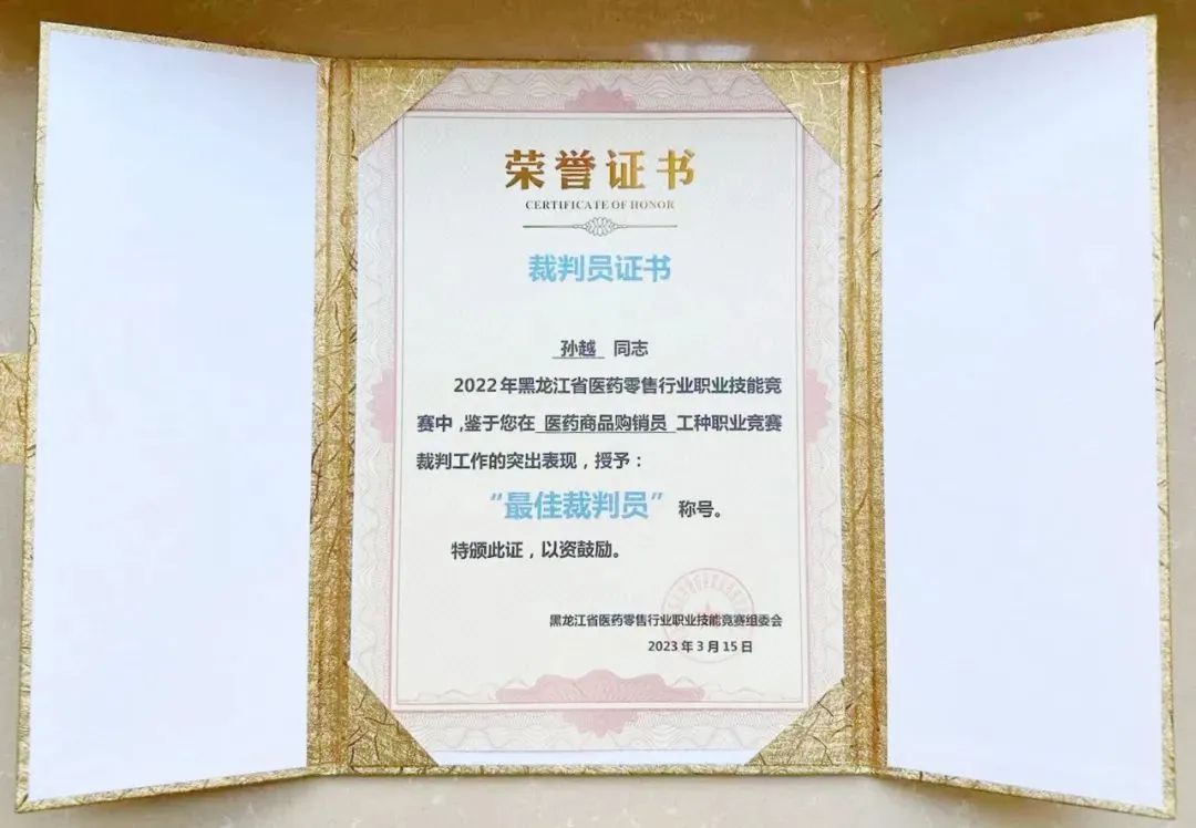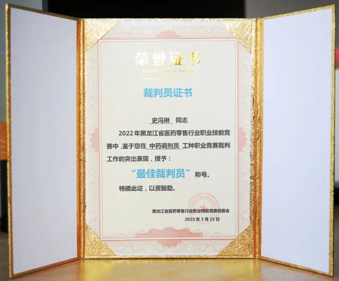 2022年1人榮獲哈爾濱市四有好老師;2023年黑龍江醫(yī)藥零售行業(yè)協(xié)會(huì)舉辦職業(yè)技能大賽,2名教師受邀擔(dān)任中藥調(diào)劑員、醫(yī)藥商品購(gòu)銷(xiāo)員兩個(gè)工種比賽的裁判,并榮獲最佳裁判稱(chēng)號(hào)。