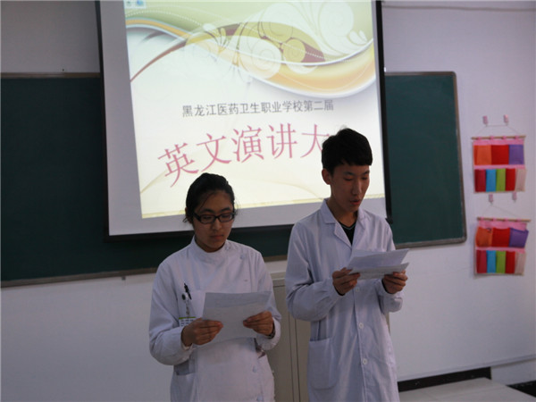 黑龍江醫(yī)藥衛(wèi)生學(xué)校校長楊玲、朱虹主任及各科室領(lǐng)導(dǎo)蒞臨本次比賽,并在賽后做出精彩點評。校領(lǐng)導(dǎo)在指出選手不足的同時,也給所有涉外班的同學(xué)指明了練習(xí)英語口語的方向;對公共教研室滿懷激情計劃指導(dǎo)比賽的教師及積極參賽的選手給予了高度的評價和贊美。