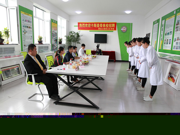 本次面試在黑龍江醫(yī)藥衛(wèi)生學校的校史館進行,卡斯美帝廠長唐運生、協(xié)理饒敏、主管蔡永霞、招生就業(yè)辦校長劉春慧,校長助理趙楠及口腔教研室主任楊勇以及15、16級口腔修復專業(yè)的全體學生參與了此次面試,我校學子準備充分,技藝高超,舉止得體得到了廣泛贊譽。