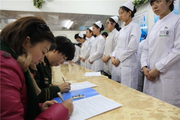 上午8點整武警醫(yī)院實習隊所有隊員與招生就業(yè)辦劉春慧校長及實習指導(dǎo)教師婁金蘭老師在黑龍江武警總隊醫(yī)院門診大廳集合,同學們?nèi)拷y(tǒng)一著裝排列整齊,楊總帶教對同學們表現(xiàn)出來的精神風貌給予高度的評價,并且在所有來院實習的學校中提出了表揚,希望其它學校能好好學習。同學們被帶到試教室,講了一些實習期間應(yīng)該注意的事項,對同學們的到來表示歡迎。并且表示同學們在實習期間如果表現(xiàn)優(yōu)秀經(jīng)過考核,在實習期結(jié)束后可以留院工作。希望同學們能夠快速的適應(yīng)實習生活,在這一年留下美好的回憶!
