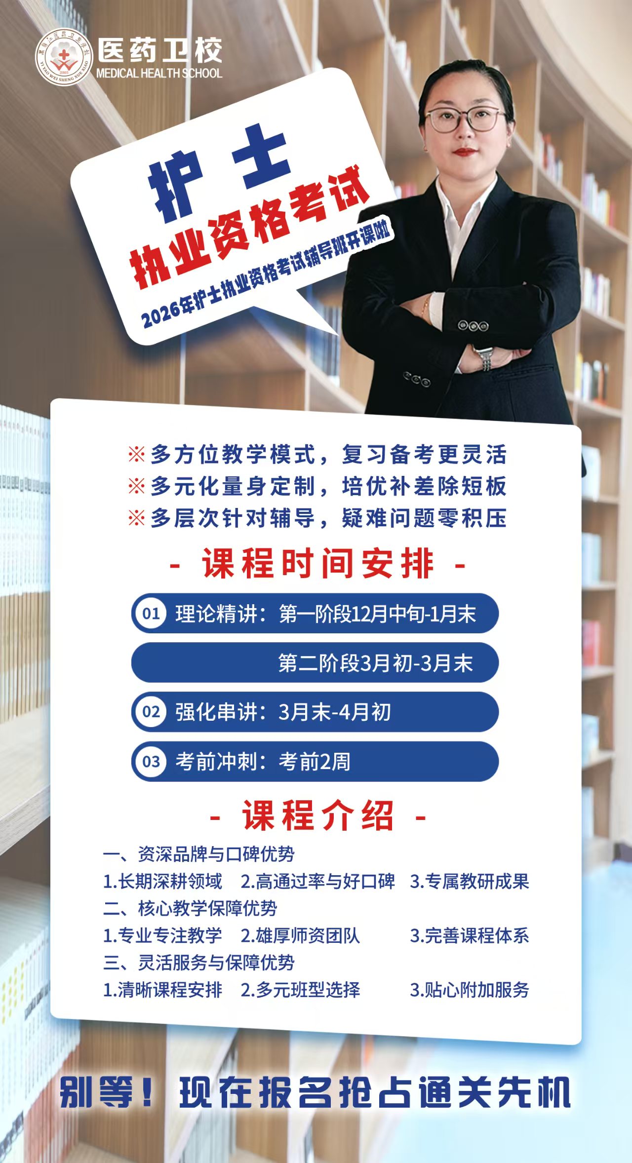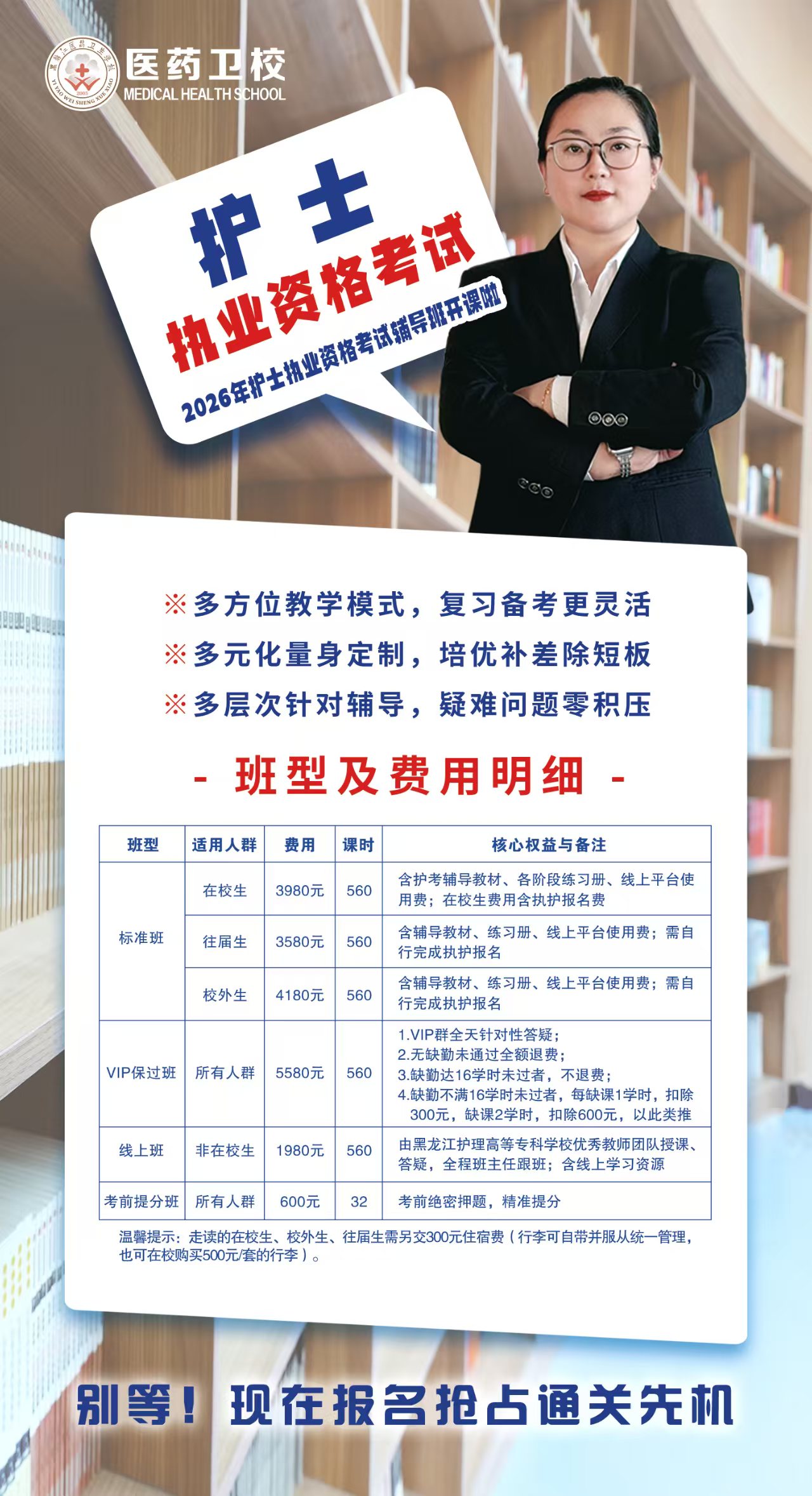 黑龍江醫(yī)藥衛(wèi)生學(xué)校護(hù)考班開課!資深師資領(lǐng)銜,直擊核心考點(diǎn),科學(xué)體系+精準(zhǔn)刷題+全程督學(xué),助你輕松通關(guān),穩(wěn)拿執(zhí)業(yè)證!