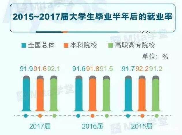 武建和潘小峰,只是近年來各地職業(yè)院校培養(yǎng)的優(yōu)秀畢業(yè)生中的縮影。最近發(fā)布的《2018年畢業(yè)生就業(yè)報告》 顯示,2017屆大學(xué)本科生畢業(yè)半年后的就業(yè)率91.6%,高職高專就業(yè)率92.1%,高職高專就業(yè)率首次超過本科。