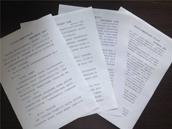 臨床護理教研室主任姜桂蘭同志在心得中寫道:“學(xué)校的發(fā)展,離不開各位老師的努力。老師的努力,一點是認(rèn)真負(fù)責(zé)工作,把自己的本職工作做好;另外一點是充分認(rèn)識自己的工作,做出自己的風(fēng)格,做一個優(yōu)秀的教師。第一點是做好老師的保證,第二點是做優(yōu)秀教師的保證。我們不能僅僅滿足于做一名認(rèn)真負(fù)責(zé)的教師,更要做一名優(yōu)秀的教師。”