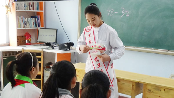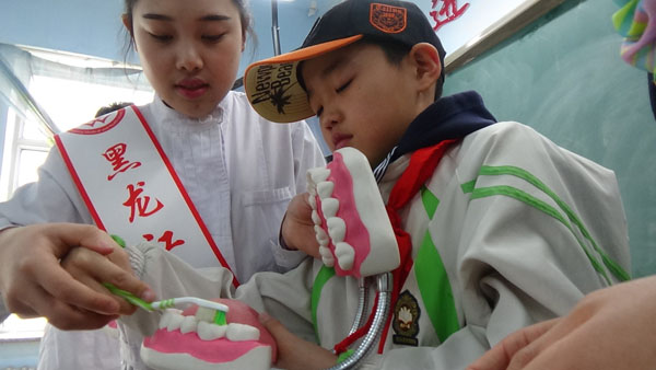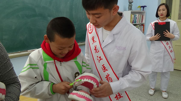 雖然“大中專一體化直通本科”是黑龍江省衛(wèi)校一直秉承的辦學(xué)特色,但是,“熱衷公益、奉獻(xiàn)社會”也是學(xué)校實(shí)際踐行的教育理念,今年春季的系列公益活動就涉及了省衛(wèi)校多個(gè)特色主打?qū)I(yè)。4月10日上午,由口腔教研室的王歡歡老師帶隊(duì),口腔護(hù)理和口腔修復(fù)的三位優(yōu)秀學(xué)生組成的志愿小分隊(duì),便來到了哈爾濱市香坊區(qū)通鄉(xiāng)小學(xué),為五年級三個(gè)班的小學(xué)生們上了一堂視頻與實(shí)踐相結(jié)合、別開生面的愛牙護(hù)牙小講座。