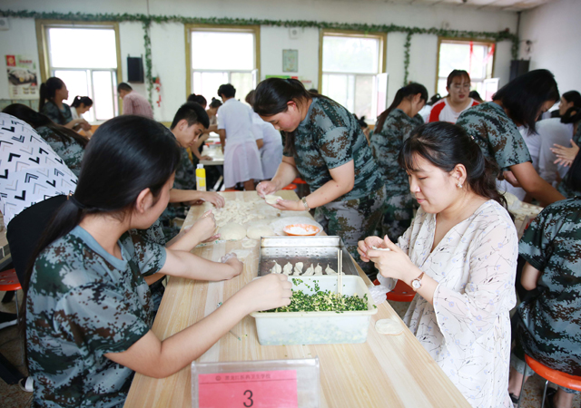 大家一起搟皮,揉面,一起包餃子